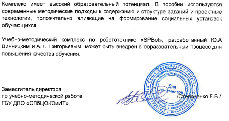 Внимание!!! Книга является частью набора, включающего в себя и компоненты для сборки робота, способного на реализацию всех описанных проектов. Набор получил название SPBot и он полностью готов для самостоятельного использования в домашних условиях. Мы постараемся в ближайшее время разместить информацию и об альтернативных схемах сборки робота на основе распространенных контроллеров mCore и Arduino Mega 2560. В целом же данный набор и разрабатываемые программы учебных курсов, рекомендации для учителей и наборы 3D деталей для расширения возможностей должны стать готовым к использованию в образовательных организациях УМК.